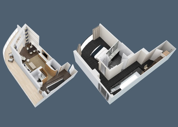 OL - Owner Loft Suite s balkónom 90 m² + balkón 46 m². 2-podlažný apartmán. 8. paluba. Max 4 osoby. Výhody Royal Suite Star Class. 5 474 € 2 737 € za osobu