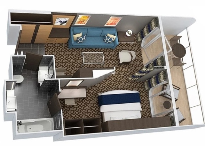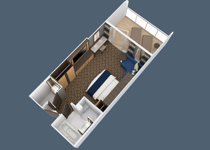 2F - Kajuta s balkónom Super Studio 11 m² + balkón 5 m². 6/7. paluba. Max 1 osoba. 689 € 689 € za osobu
