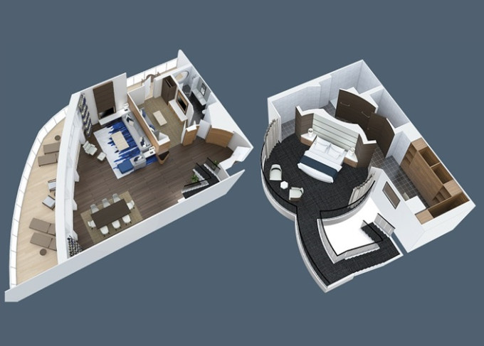 SL - Sky Loft Suite s balkónom 62,5 m² + balkón 17 m². 2-podlažný apartmán. 8/10. paluba. Max 4 osoby. Výhody Royal Suite Sky Class. 4 039 € 4 039 € za osobu