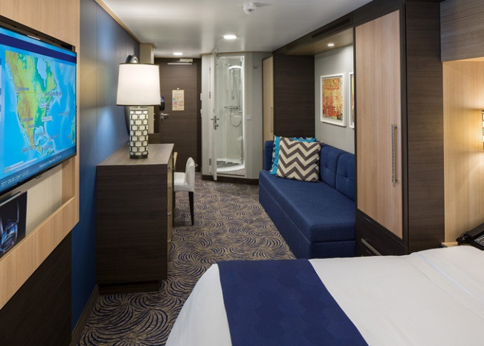 5U - Vnútorná kajuta s virtuálnym balkónom 15 m². Obrazovka veľkosti balkónových dverí s premietaným výhľadom. Max 3 osoby. 1 240 € 310 € za osobu