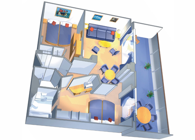 | VP - Ocean View Panoramic Suite (bez balkónu) 38 m². Panoramatické neotvárateľné okná. 12. paluba. Max 6 osôb. Výhody Suite. | 6 176 € 1 544 € za osobu | ||