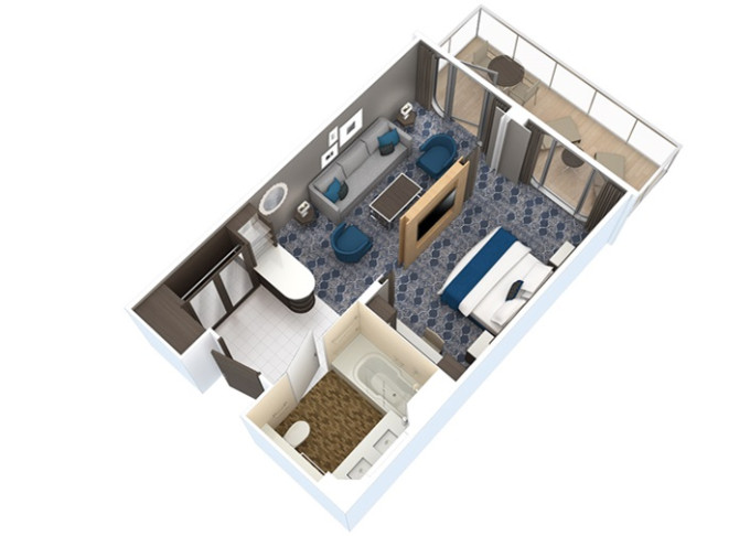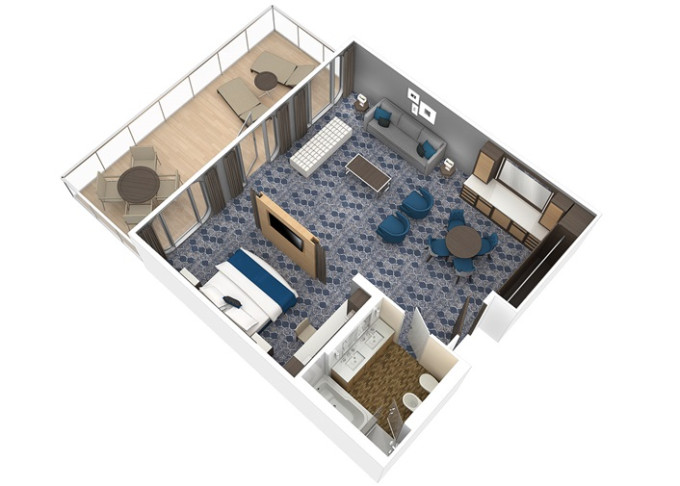 J3 - Junior Suite s balkónom 27 m² + balkón 7 m². 7,8,14. paluba. Max 4 osoby. Výhody Royal Suite Sea Class. 1 890 € 1 890 € za osobu